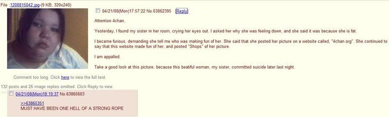 Post Options Post Options   Thanks (0) Thanks(0)   Quote Enmity Quote  Post ReplyReply Direct Link To This Post Topic: 4chan gone too far?