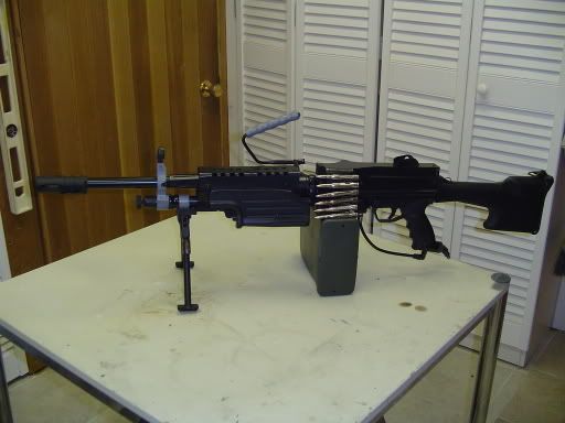 Hi guy's this is not from me but i tought you would be interested by it anyway. That's the creation of one of my team mates from the S.E.A.L. Team 1. Of corse it's an M249 that he build him self other then the stock the muzzle break and both plates for the hand grip all the rest was cstom build and put together to get that awsome gun in the end.