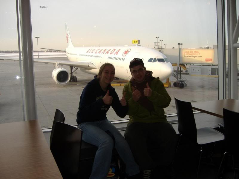 me and a girl from one of my classes sitting infront of the plane we took too germany