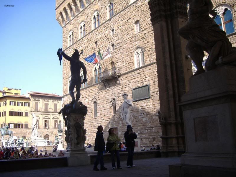 The famous balcony in florence italy, from Hannibal where anthony hopkins hangs the guy. its also the same building the staue of david is iin there is a fake one outside,