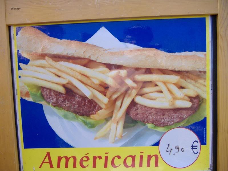 It's basically every American stereotype on one loaf of bread. It's got two hamburger patties AND fries.Holy crap, I think I see bacon on there, too.