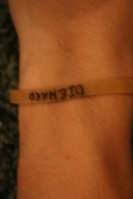 everyone at my school wears those frikin things, i know it's for "charity" but still, if you really think about, a yellow rubber thingy around your arm is well...