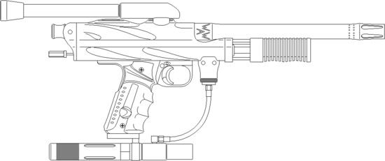 Cocker/Sniper: -wwa ultra grade sniper kit with volumizer -ANS single trigger frame -dye stickies -AKA tornado/PPS low turbulance valve -15 rd. feed tube -bigshot