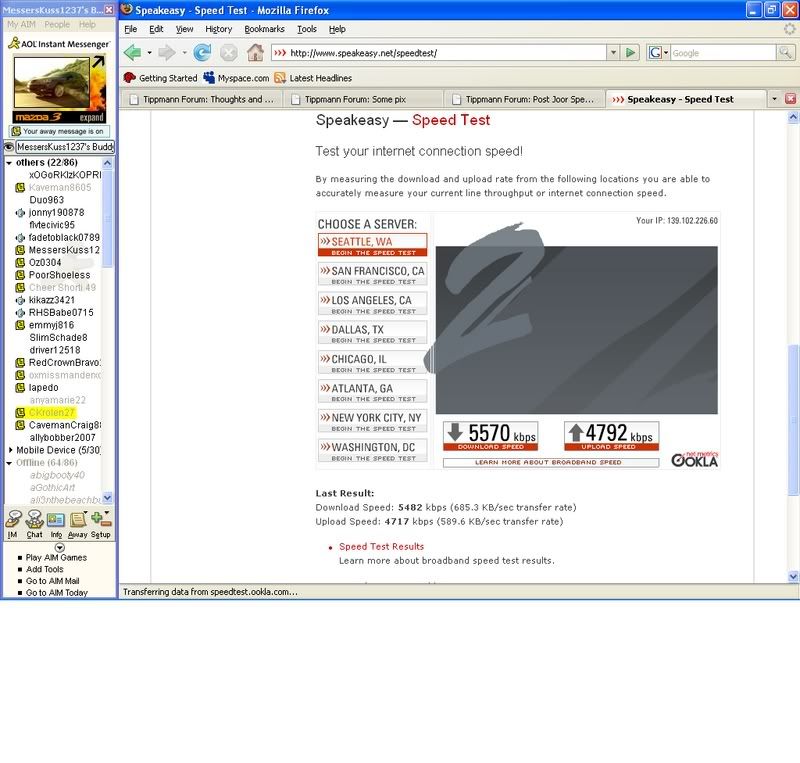 I tried Dallas again and got 30418 down, 12018 up. Of course, I'm at work.
