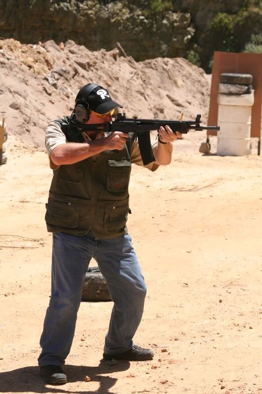 First one that grabbed my attention was something that came into play on my own shopping trip recently. Shooting posture on the M-16 family teaches the shooter to put your nose to the charging handle (at least, it did when I learned) to ensure that your shots go to the same place every time. Shooter wasn't doing that, but he seemed accurate enough. I'm not sure yet what the proper body posture is with an AK, but I plan to learn (picked one up a week or so ago, been too cold & nasty out to go play with it). More glaring was the AK shooter very obviously jerking the trigger. Granted, mine has a harsh trigger pull, but there was in NO WAY any squeeze action going on with the AK. Jerk, jerk, jerk. It's no wonder that shooter wasn't hitting the target at 200.