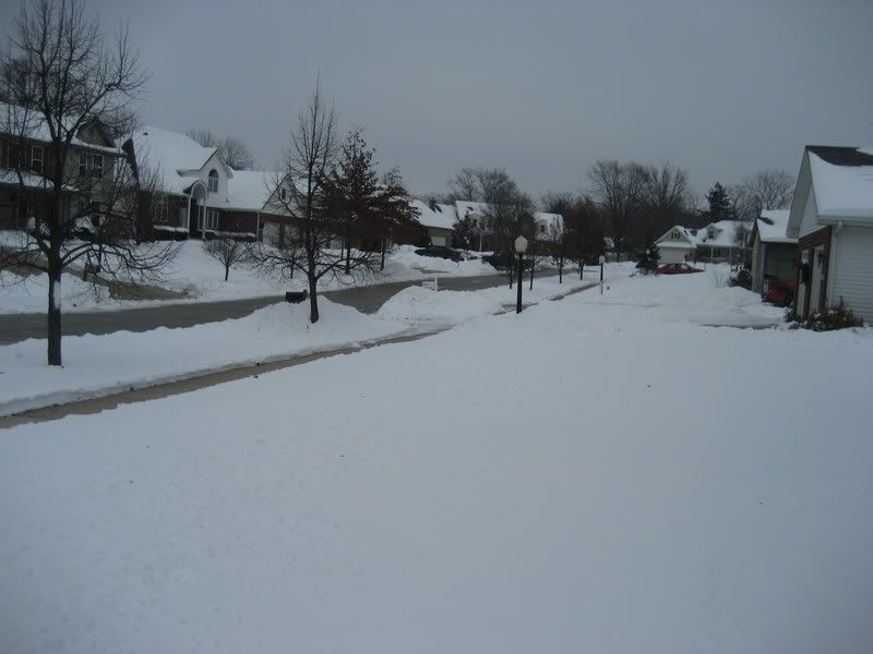 We got maybe about 6 inches here in St. Louis. I don't have any pictures, but we did make a 4-5 ft snow ball. We kept rolling it and making it bigger until we couldn't push it anymore.