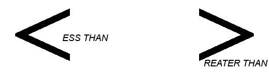 greater than and less than symbols.