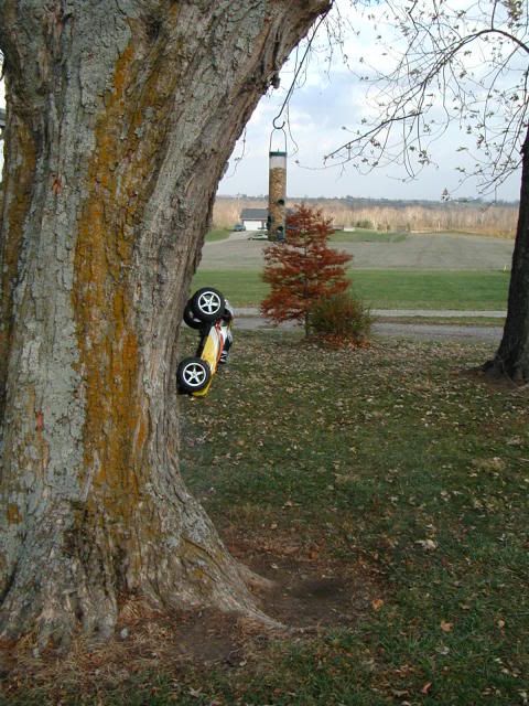 But, when I thought, hey, that tree looks like the kind I used to ride on my bike?... I wonder if I could do backflips off of it with my R/C car...