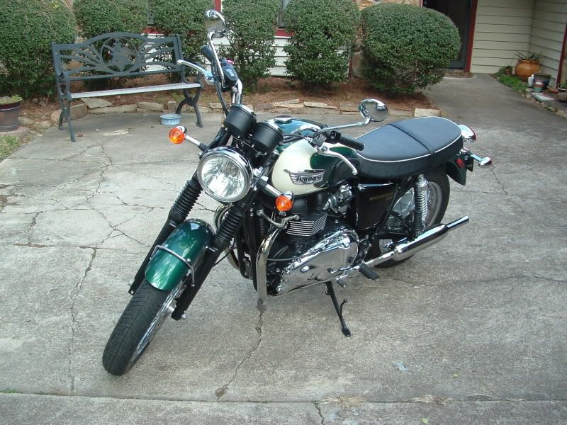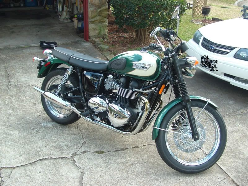Awesome looking bikes i much prefer the blacked out Bonnie myself as i HATE polishing chrome and the Black model has the cast wheels with tube less tires (again a preferance thing).  Have considered getting one myself a few times but Comfort and tourability top my list of needs and for the price there are better options for me.  But for a commuter weekend toy triumph in my books OWNS the game.