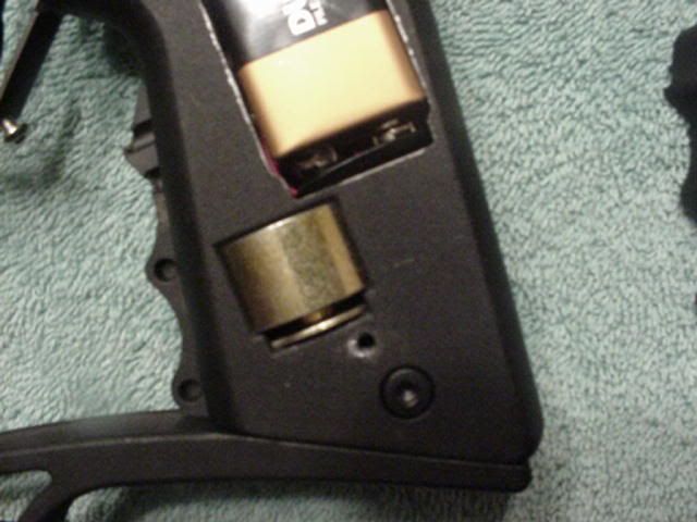 A few minutes ago, i was pulling the trigger on my pro custom e (making it click) and all of a sudden it stopped. I took off the left grip and this is what i see: ![]() It shouldn't look like that. It should look like this: ![]() What could be wrong??? By the way, I just tried it with 2 new batteries and it does the same thing. Edited by ScMc |