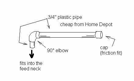 If you want it to gravity feed, then omit the 90° and stick the tube straight up!