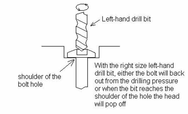 Yes, the picture below advocates a left-handed bit, but a standard bit will work. Use a bit that is larger than the diameter of the screw shank. You are not trying to drill the screw out, just cut through to the point where the head comes off.  After removing the rest of the screws the shells can then be separated and the screw shank removed with a pair of Vise Grips. Or the screw and nut can be tapped out with a small hammer. Replacement Allen head screws are available from stores like Home Depot and Lowe's.