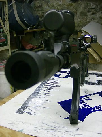 Well, I tried out my upgraded gun in the field and for the most part it worked out real well, except for the SAW stock. I $&#*@% HATED IT! All I could think about was, "Why did I sell my JCS?!". Anyways, I bought a fixed wire stock, really nice, new grips since I went back to a single trigger, and a star-fire bolt. I figured, what the hell, might as well see for myself. This should be the final look, but I am considering another rail to raise my sight and to fill in the gap.