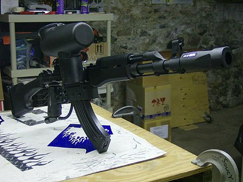 Hehe yep, it took me a couple of days to get used to it myself, but every element of this gun serves a purpose and creates the "same, but different" look I was after. There's a lot of players with an "AK", but I wanted to make sure that when put side by side with another of it's ilk, mine would stand out as good as money could buy by way of looks and functionality. There's nothing here that's purely for looks. Sure it's pretty, pretty #&*%@ dangerous!