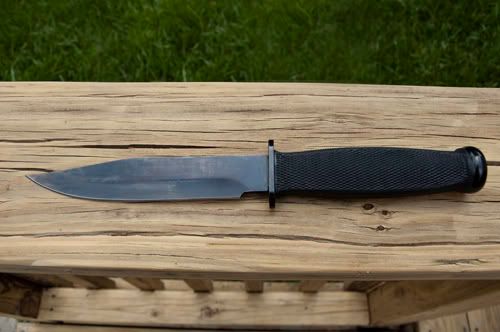 Okay, so as many of you know, I secretly think I'm Rambo, and have an obsession with knives. So, while browsing through the local army surplus store, I decided to pick two up a few days ago. It later occurred to me I can't carry either one in Missouri, but hey, I still love them.