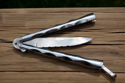Thing is sneaky, the whole collecting knives thing is rather childish to alot of people. Then when you throw in a butterfly knife, you seem like you are thirteen. Its not like you want a nice high carbon blade, or a small spring assist, you are collecting the OMGZ IM COOL I GOT LIEK THIS MINI MACHETTY AND A BUTTER FLY KNIFE 11111111111!~!!!!! knives.