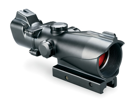 Bushnell trophy. Technically made for pistols and shotguns, and I wouldn't trust my life with it or anything, but from what I'm reading on AR-15 forums they make a great cheapo alternative to an actual ACOG. Here it is mounted on the gun-