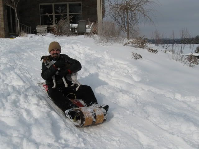 Toby is a cocker/dachsund mix, so I guess that would make him a Cockshund or a Dachser Spaniel?  Rusty is a Jack Russell.